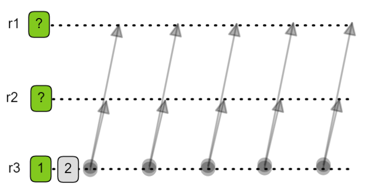 If “advances” were to mean increment the view on timer, but assume the message view number on receiving an SVC/DVC with a higher view, then we avoid that non-optimal behaviour. With assume-mode, r3 assumes the view number of an SVC or DVC message with a higher view number.
