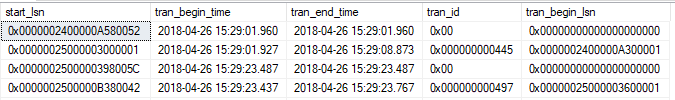 So far what we don't have are the dates and times of these changes. That is where the cdc.lsn_time_mapping table comes in. It records the start and and time of each LSN.