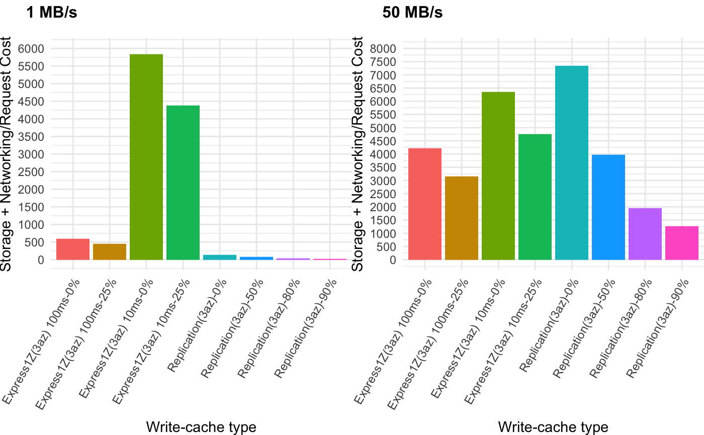 To summarize, the cost model of a fault-tolerant WAL based on S3 Express One is more complex than that of replication. It all depends on the mix of: